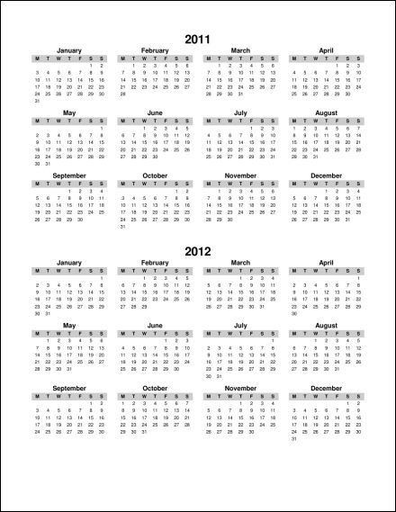 Multi Year Calendar Template.