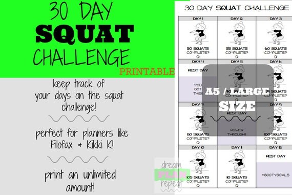 A5 / Large Size 30 Day Squat Challenge PRINTABLE PLANNER