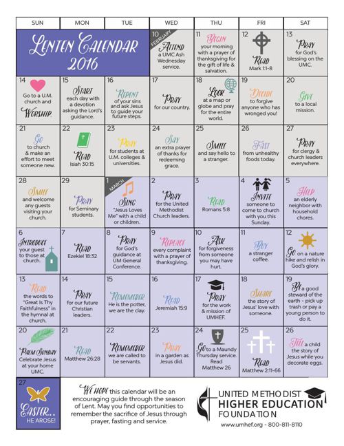 Printable Calendars for Lent | Zephyr Hill